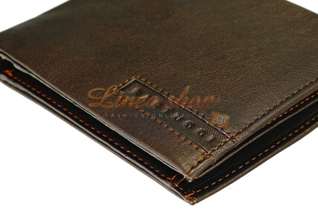 - Αντρικό δερμάτινο πορτοφόλι σε 100% γνήσιο ποιοτικό δέρμα μοσχάρι, με θέσεις για 6 τουλάχιστον κάρτες, ταυτότητα έως 11cm, μεγάλο διπλό χώρο για χαρτονομίσματα, μεγάλο χώρο με καπάκι για τα κέρματα, τρεις χώρους για χαρτιά και δυο διαφάνειες.