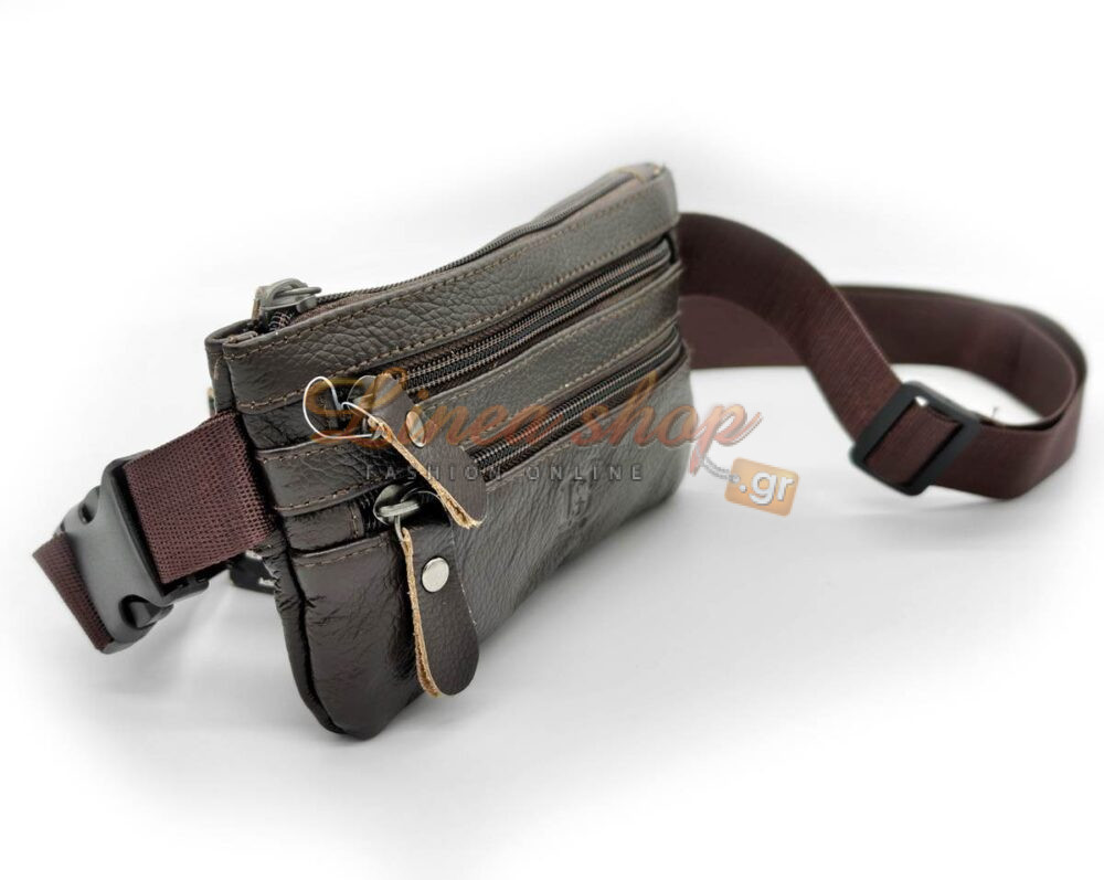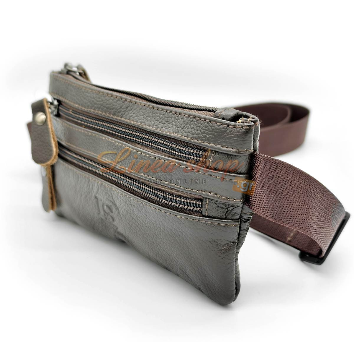 Δερμάτινη λεπτή μικρή μπανάνα μέσης, με έναν κυρίως χώρο και 2 εξωτερικά φερμουάρ, κατασκευασμένη από 100% δέρμα μοσχάρι (όχι αρνί που ξεχειλώνει και μαδά), εξολοκλήρου φοδραρισμένη, ιμάντας μέσης με ποιοτικό κλιπ 35 mm, ανθεκτική, αξιόπιστη και οικονομική.