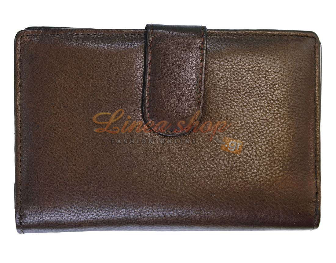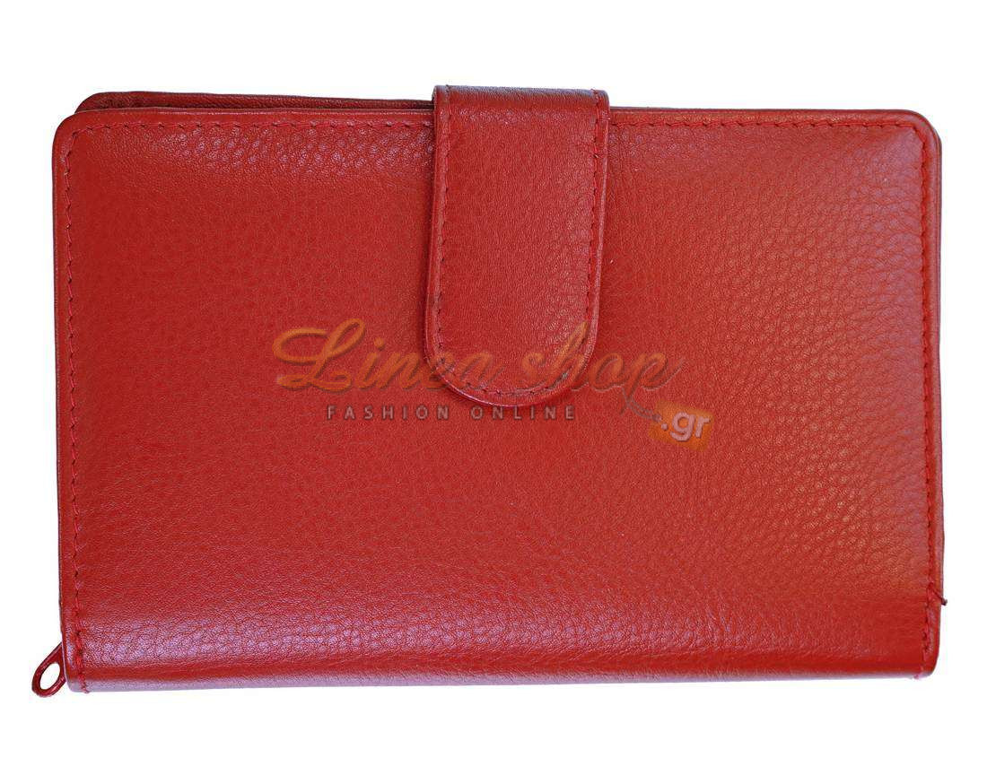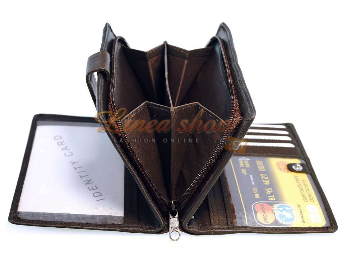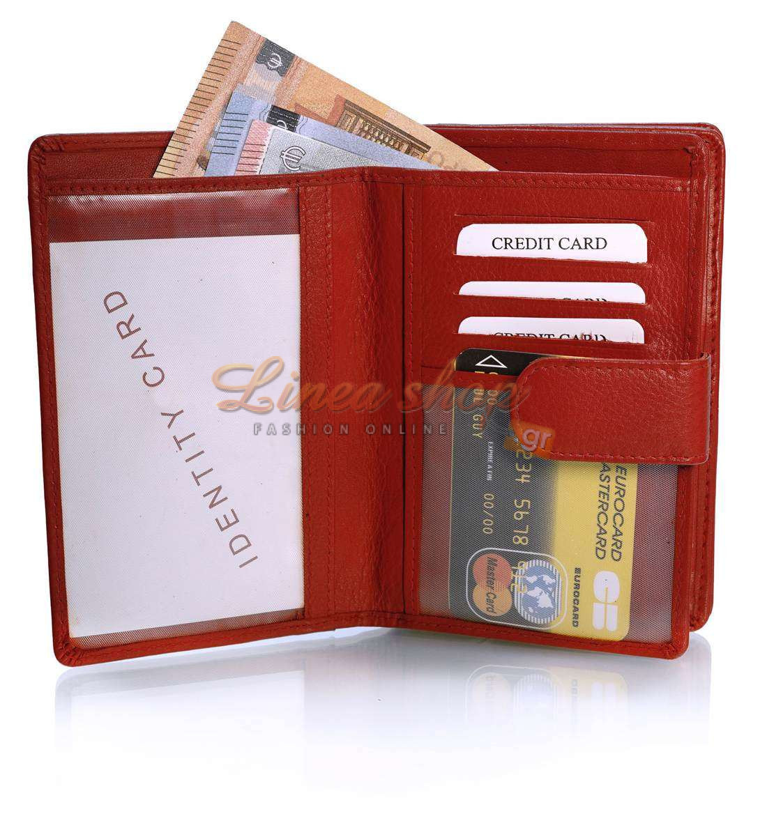 Γυναικείο δερμάτινο πορτοφόλι, από 100% δέρμα μοσχάρι, τρίπτυχο πολυθέσιο με χώρους για 15 κάρτες σε διαφορετικά σημεία, 4 διαφάνειες, διπλό μεγάλο χώρο για τα χαρτονομίσματα, 8 διαφορετικά σημεία για έγγραφα, φερμουάρ με διπλό χώρο και μεγάλο διπλό χώρο για κέρματα στη μέση.