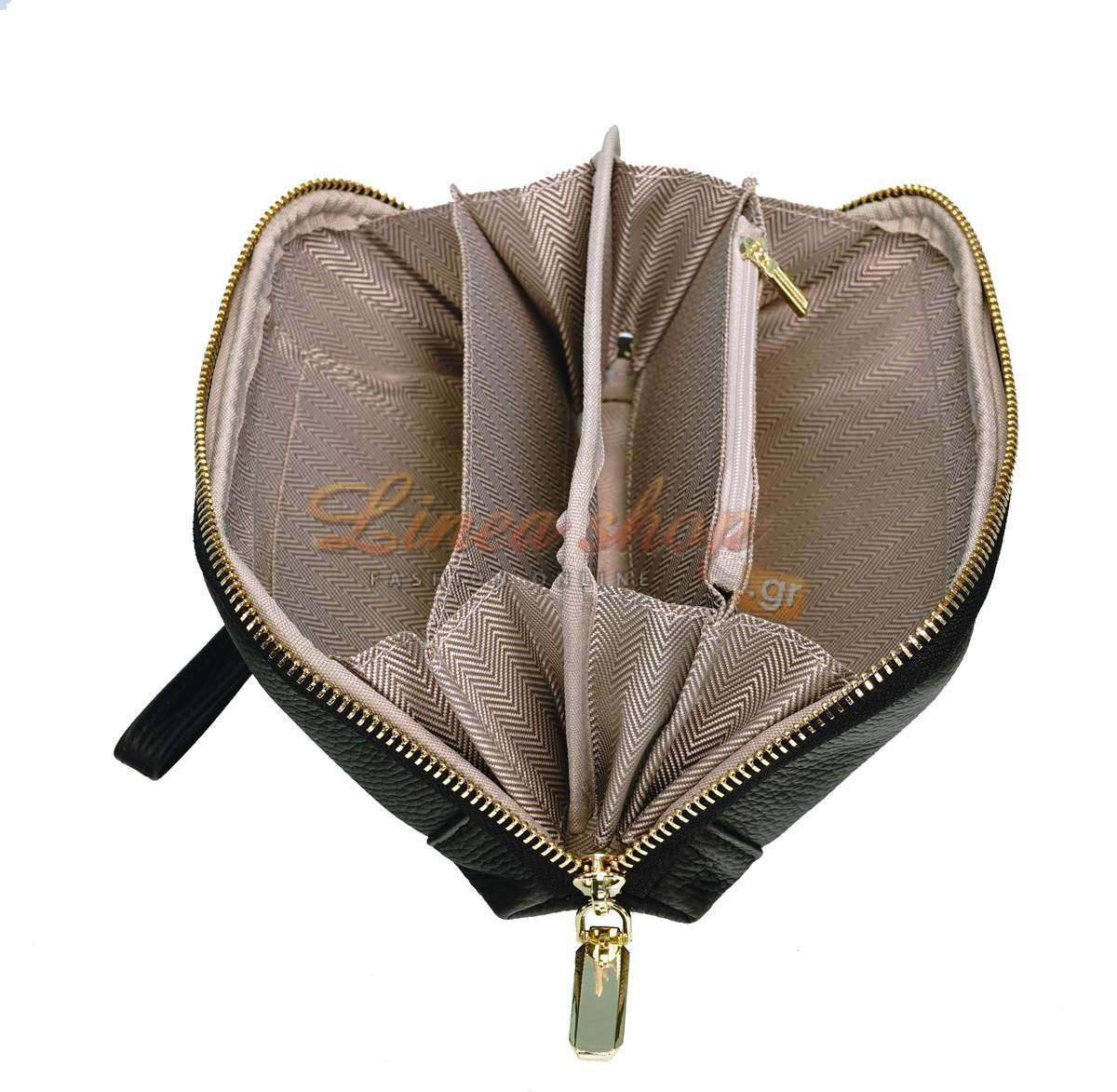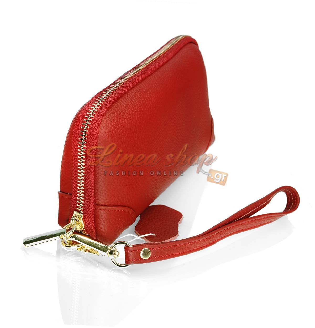 Δερμάτινο πορτοφόλι χειρός, κατασκευασμένο εξ ολοκλήρου από 100% χοντρό δέρμα μοσχάρι, προαιρετικό χέρι καρπού το οποίο αφαιρείται, πολλές εσωτερικές θέσεις, συγκεκριμένα τέσσερις ανεξάρτητους χώρους και μία τσέπη με φερμουάρ, τσεπάκι για κάρτες στο τοίχωμα, εκτός από έγγραφα σας μπορεί άνετα το κινητό σας, να πάρει όλων των μεγεθών τα χαρτονομίσματα σε κάποια από τις θέσεις που διαθέτει, κέρματα στο φερμουάρ κ.λ, μικρό διακριτικό αλλά με χώρους, από τα πιο πολυθέσια του είδους, εναλλακτική λύση να αντικαταστήσει ακόμα και ένα κανονικό πορτοφόλι.