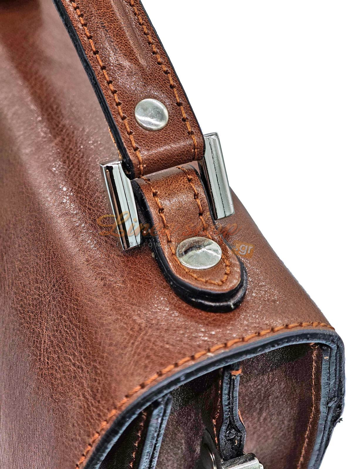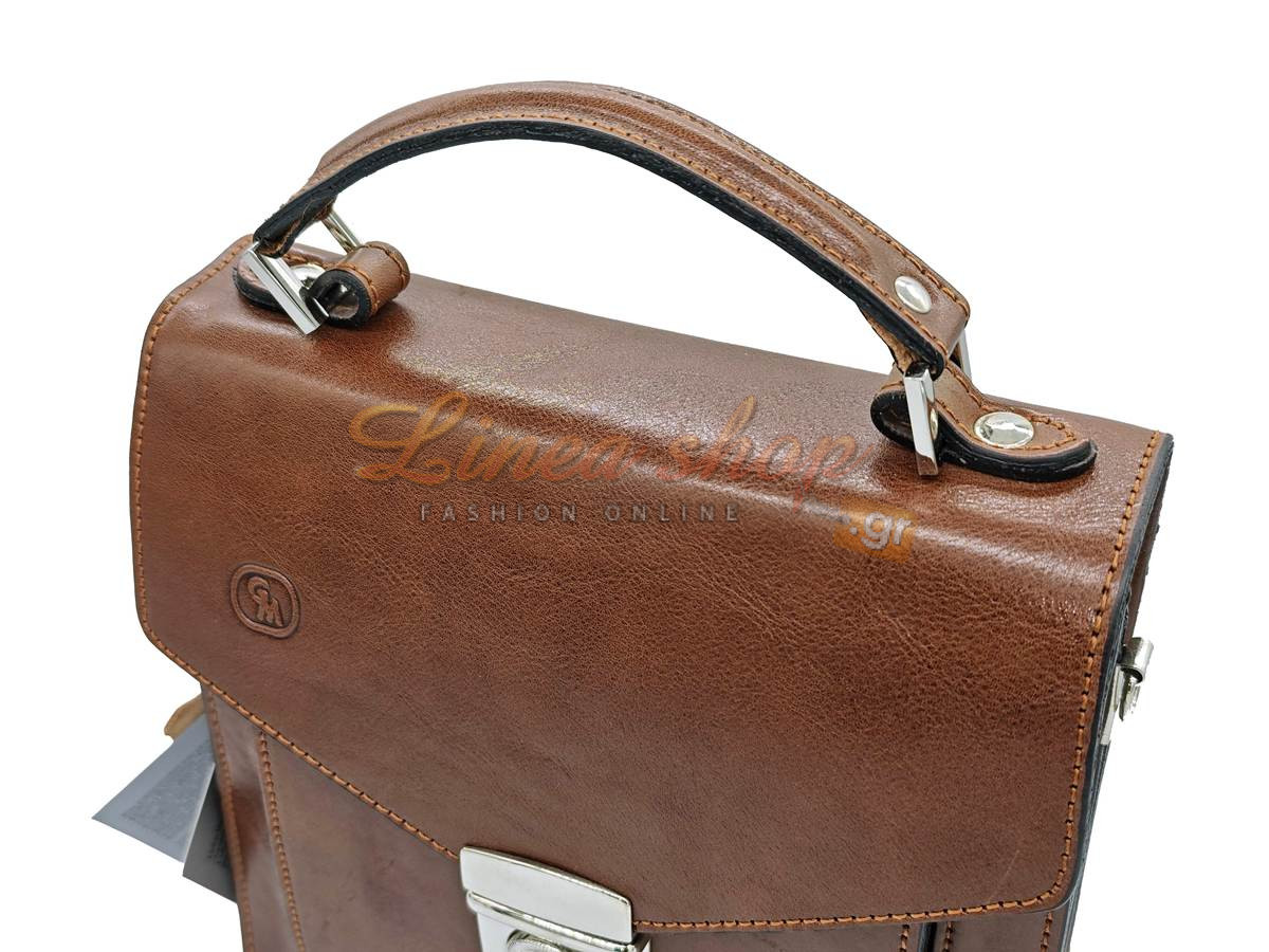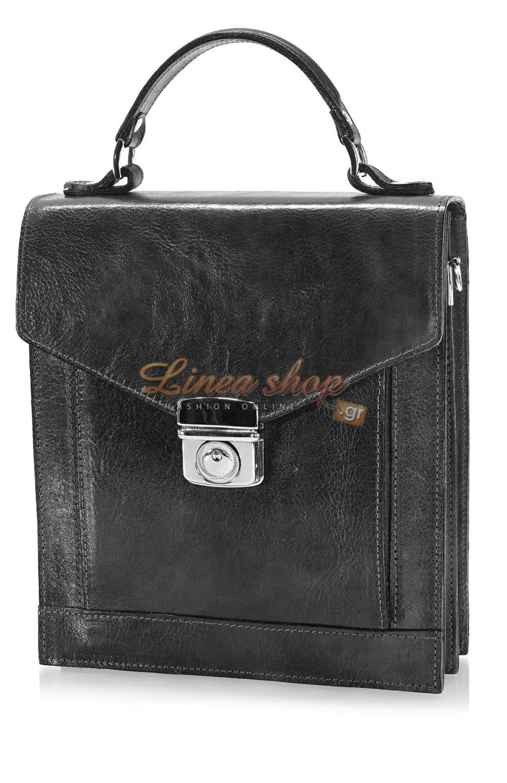Δερμάτινη αντρική τσάντα, μικρού+ μεγέθους, κατασκευασμένη από πρώτης ποιότητας δέρμα μοσχάρι , αλλά & ποιότητα κατασκευής σε πολύ ανταγωνιστική τιμή, ίδιο δέρμα & εσωτερικά κάτω από το καπάκι κλ, στιβαρά τοιχώματα, η τσάντα διαθέτη 2 ανεξάρτητους χώρους με φερμουάρ στην μέση & μεγάλη τσέπη εμπρός, εξωτερικά τσέπη με φερμουάρ στο πίσω μέρος.