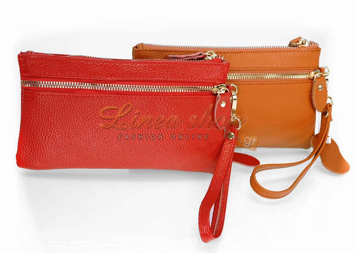 Γυναικείο δερμάτινο πορτοφόλι χειρός, κατασκευασμένο εξ ολοκλήρου από 100% δέρμα μοσχάρι, προαιρετικό χέρι καρπού το οποίο αφαιρείται, διαθέτει έναν κεντρικό χώρο με μία τσέπη με φερμουάρ στο εσωτερικό, τσέπη με φερμουάρ και στο εξωτερικό μέρος, εκτός από έγγραφα μπορεί άνετα να πάρει όλων των μέγεθούν τα χαρτονομίσματα, το κινητό σας κ.λ, μικρό & διακριτικό.