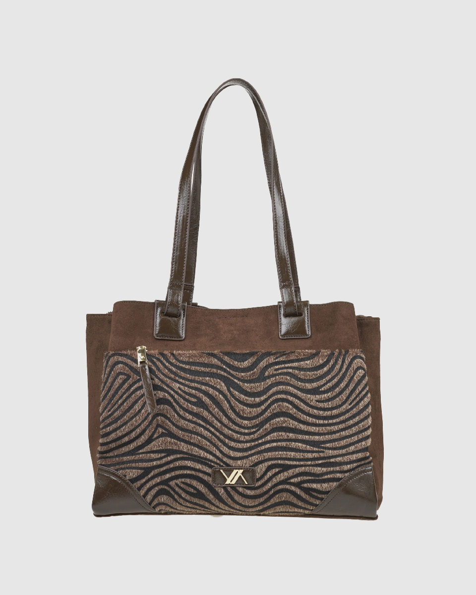 • Εξωτερικό: Μπροστινή τσέπη με φερμουάρ και τύπωμα zebra, μεταλλικό λογότυπο