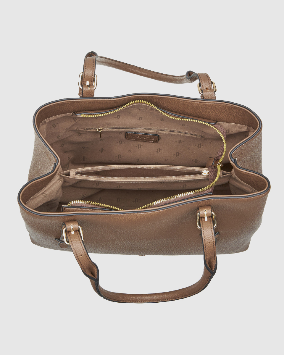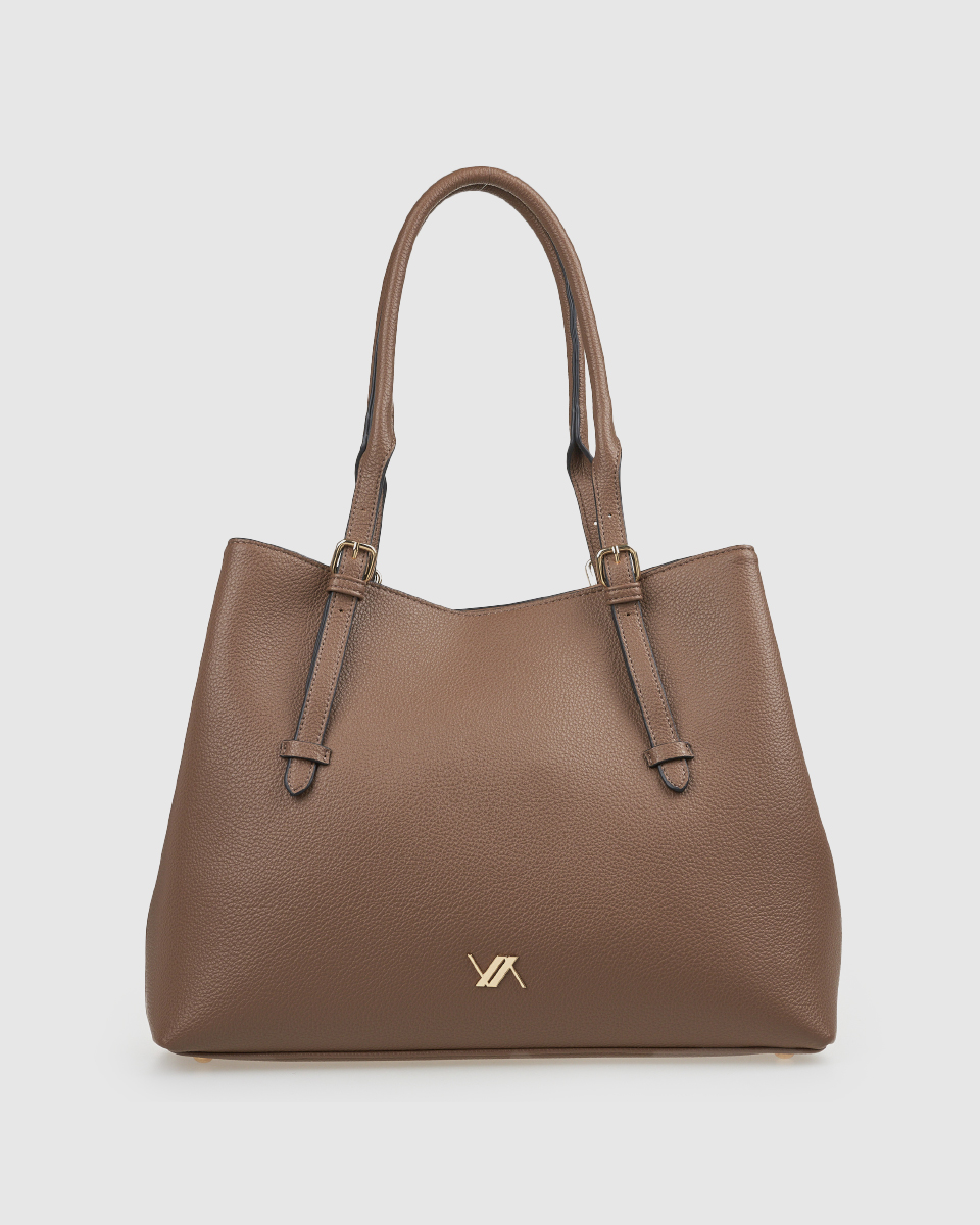 Η τσάντα ώμου Verde σε διακριτικό πουρού χρώμα συνδυάζει καθημερινή άνεση με