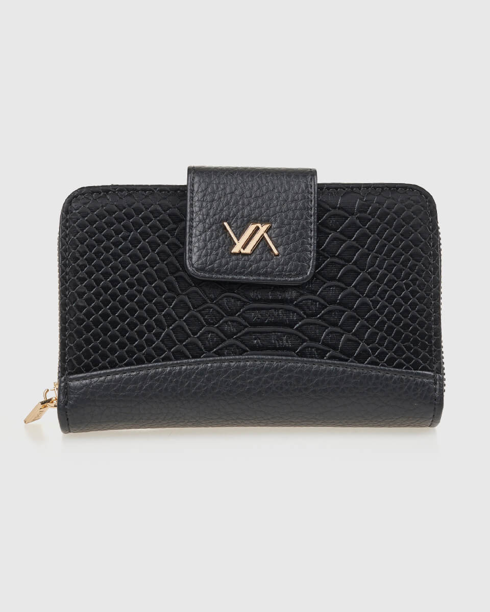 Κομψό και διαχρονικό, αυτό το γυναικείο πορτοφόλι Verde συνδυάζει ανάγλυφη υφή τύπου animal print με λεία υφή, δημιουργώντας ένα μοντέρνο αποτέλεσμα με χαρακτήρα. Διαθέτει πρακτική εσωτερική οργάνωση και ιδανικό μέγεθος για καθημερινή χρήση, ενώ το χρυσό λογότυπο προσθέτει έναν διακριτικό τόνο πολυτέλειας.